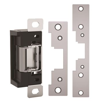 The 7000 Series offers two solutions to address preloaded doors. The in-frame adjustable feature allows the installer to easily adjust the electric strike opening to accommodate the horizontal position of the latchbolt after installation. The preload release function allows the electric strike to operate smoothly throughout the year under varying loads on the door caused by air-conditioning pressure, changes in the weather, warped doors or doors with weather stripping that often bind standard electric strikes. This unit accommodates cylindrical latchbolts up to 5/8" throw and rim exit latchbolts up to 3/4" throw.